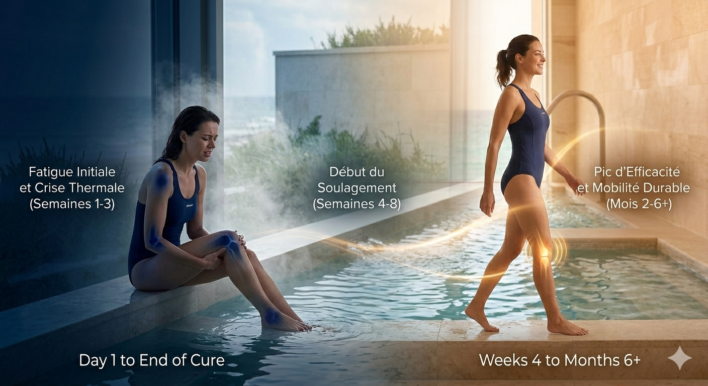 Quand agissent vraiment les soins thermaux sur l'arthrose ? Découvrez le calendrier des bénéfices, de la fatigue initiale au soulagement durable des douleurs.